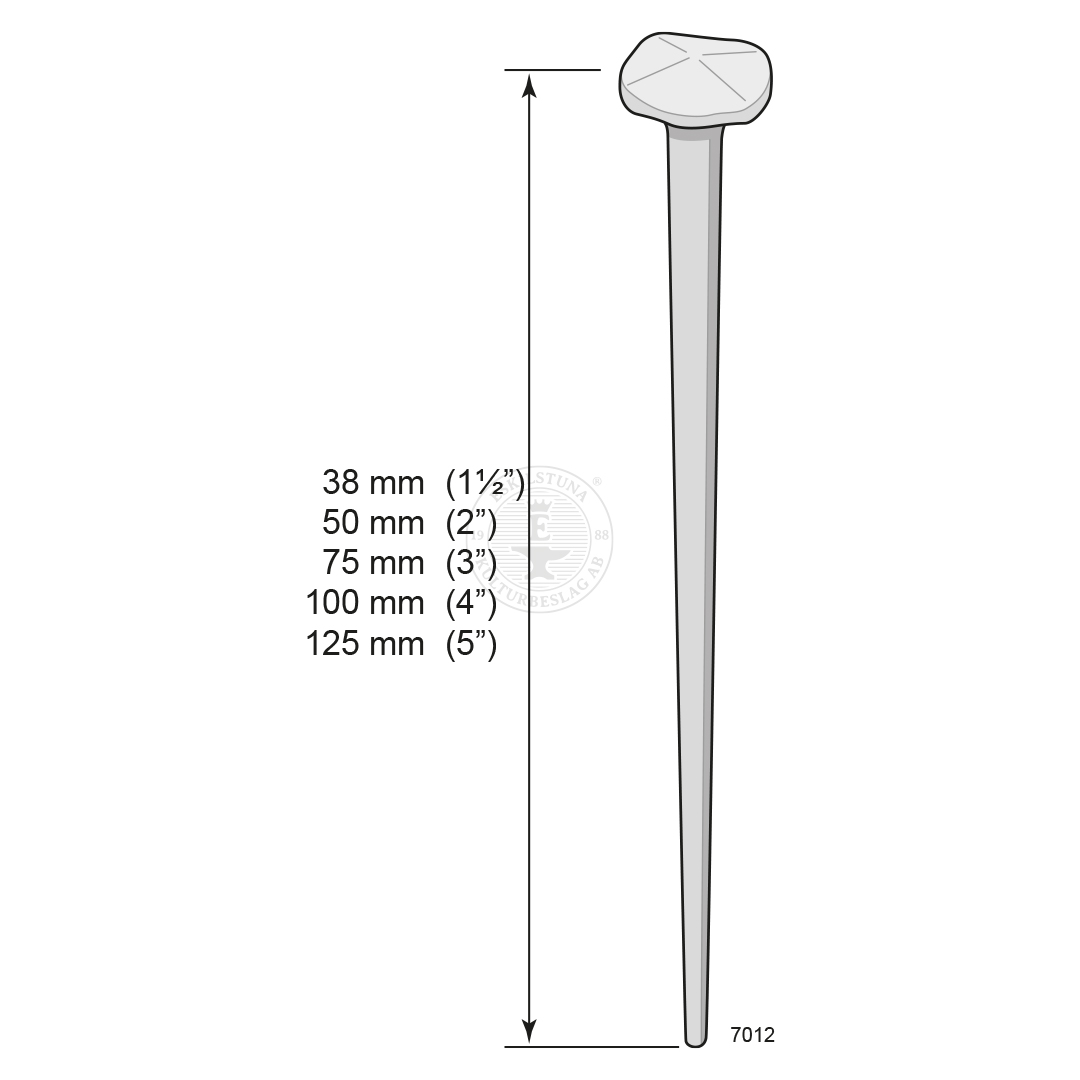 | Other | Traditional Swedish hand-forged nail, which is used e.g. for securing hand-forged door hinges or other hardware, as well as for nailing panels, ceilings and floors. |