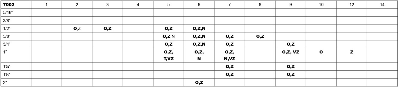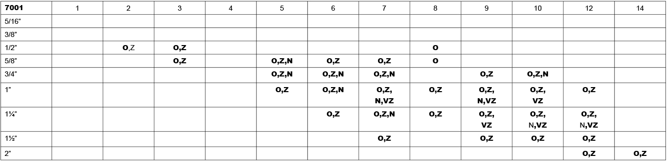 Bold = In stock, Thin style = available with delivery time, O = Untreated, N = Nickel-plated