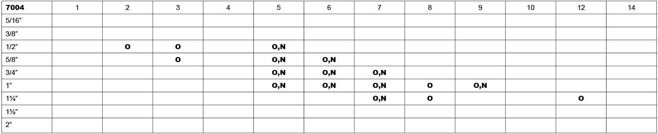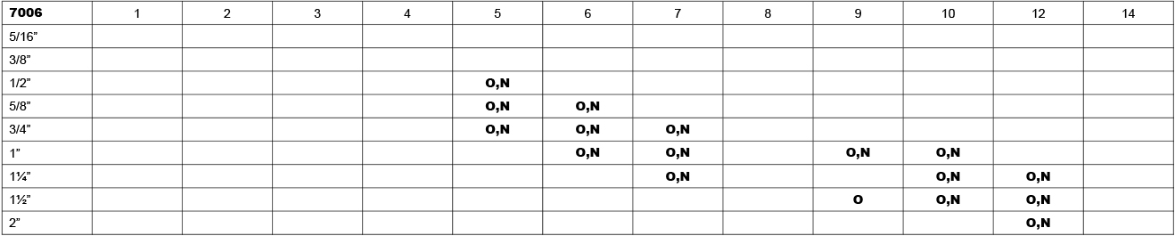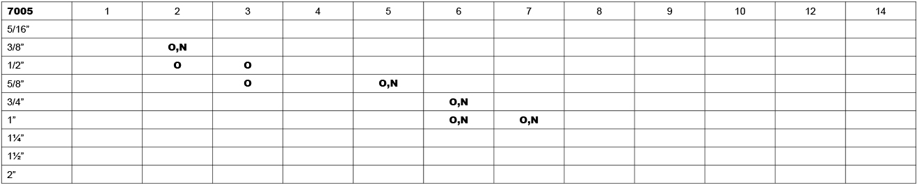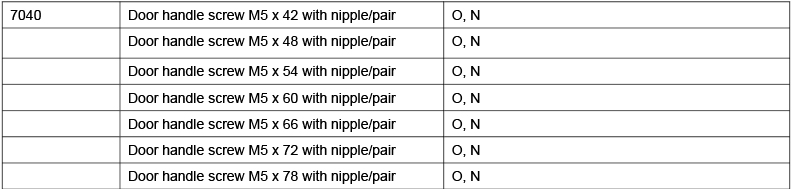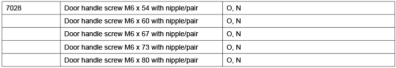 Bold = In stock, Thin style = available with delivery time, O = Untreated, N = Nickel-plated,