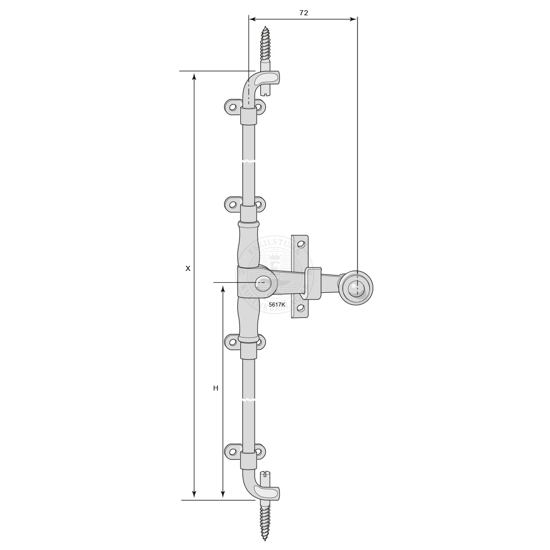 Övrigt | Helt lika espagnolette 5617 förutom handtagsknoppen. |