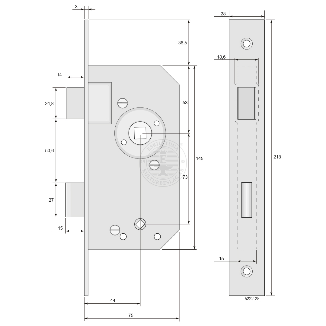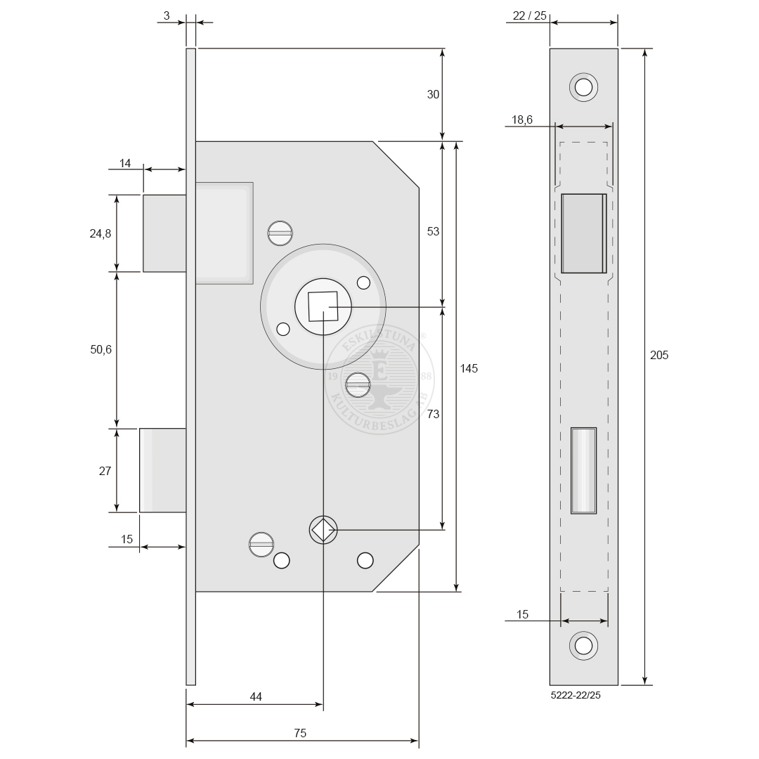 Storlek | Dorndjup 44 mm, låshusets djup 75 mm. |